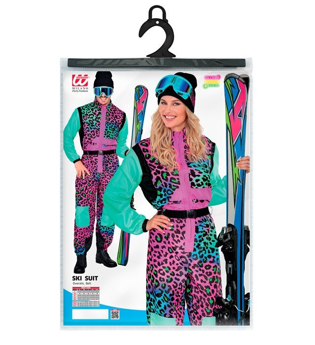 Val op op de piste of op het feest met dit opvallende skier en snowboarder kostuum in luipaardprint. De felle kleuren en speelse uitstraling maken dit kostuum geschikt voor zowel dames als heren.