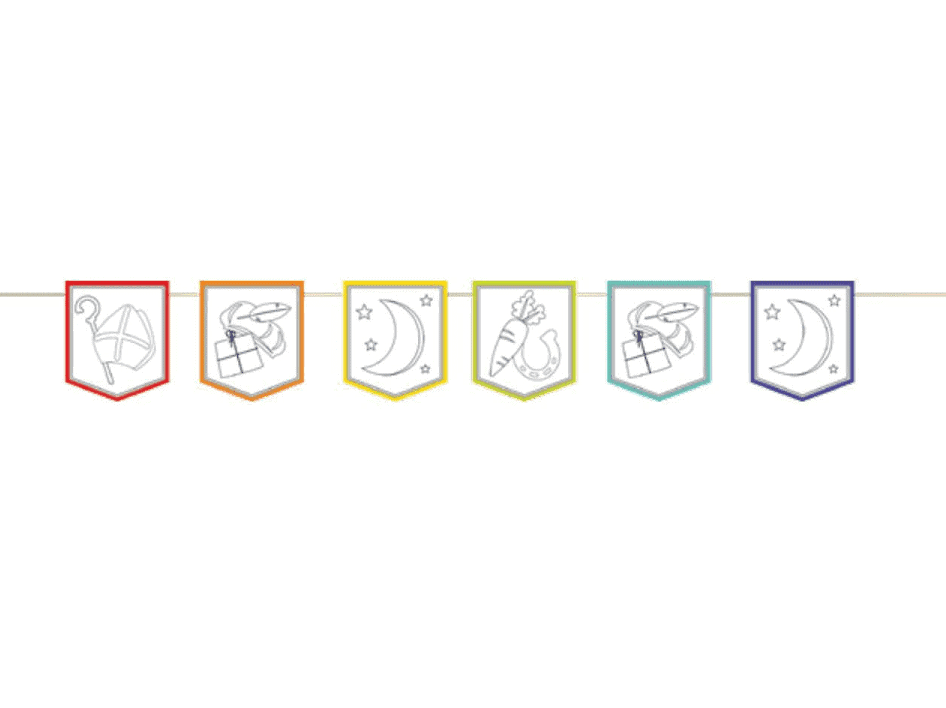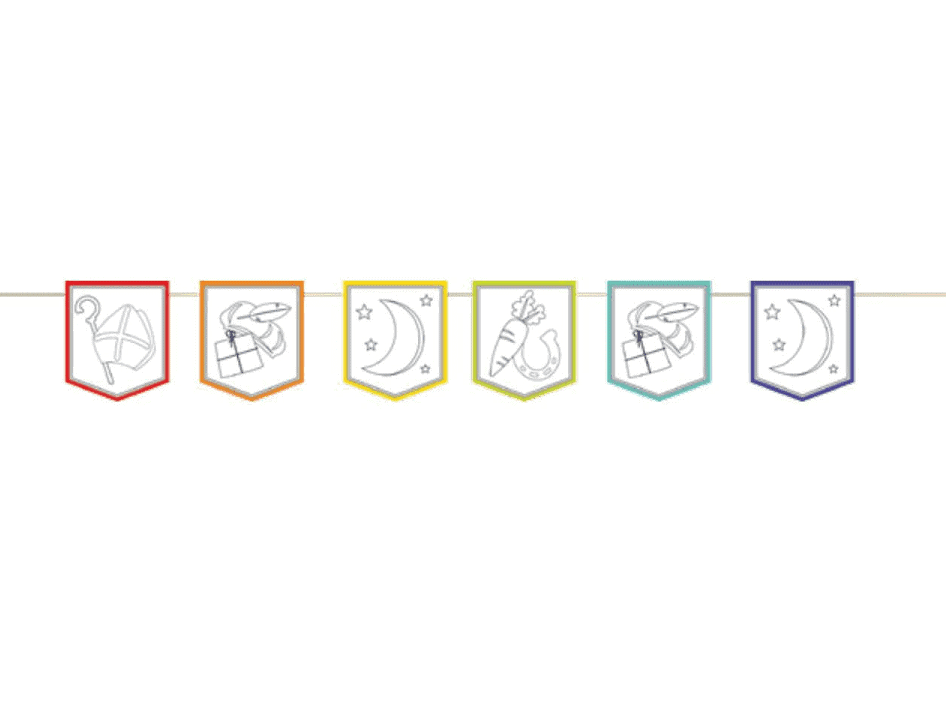 Aantal: 1 stuks | Afmeting: 4 meter | 6 vlaggen met verschillende Sint ontwerpen om in te kleuren
