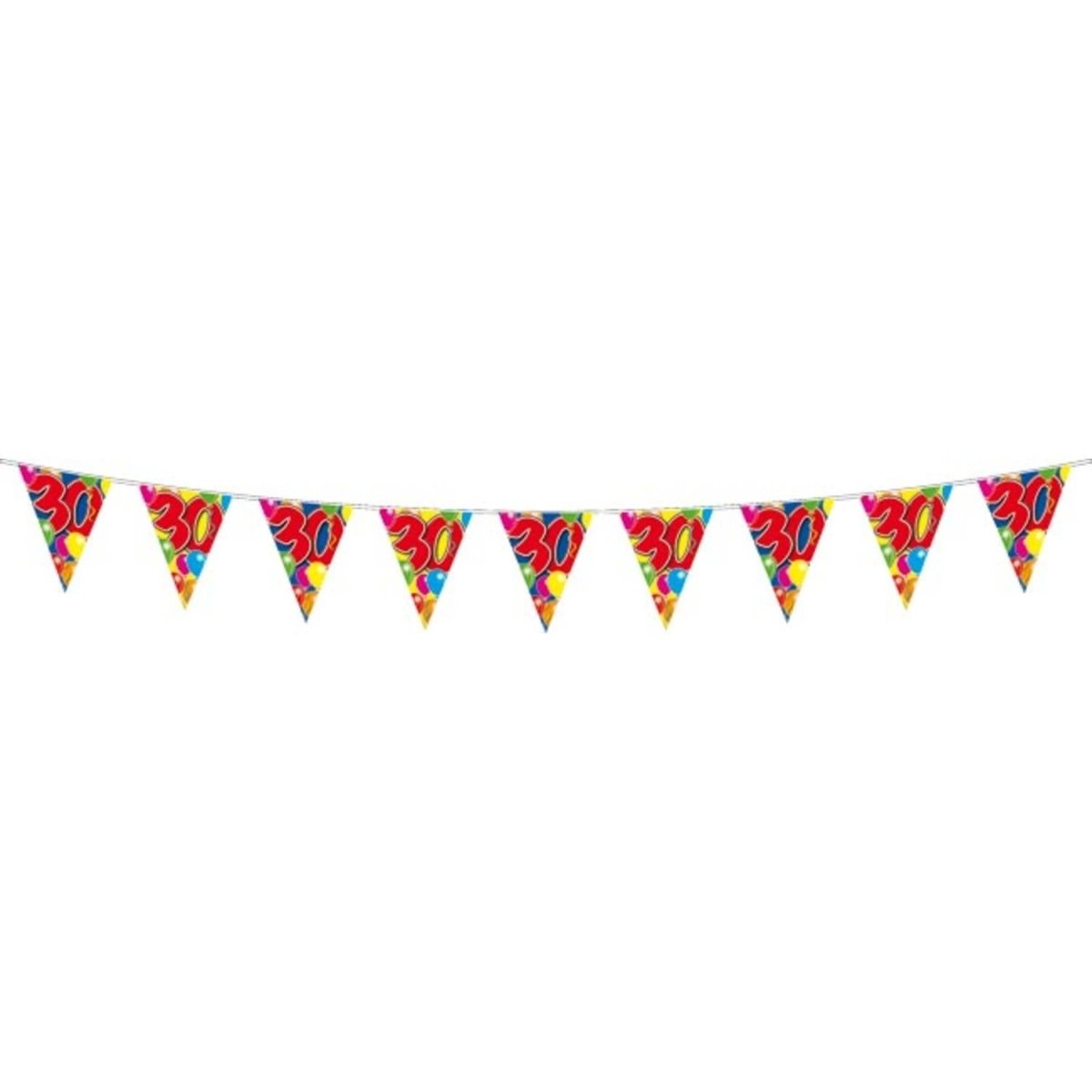 30 Jaar Slinger Balloons - 10 meter. Inhoud: 1 vlaggenlijn. Kleur: Meerkleurig. Productthema: Balloons. Bijvoorbeeld te gebruiken tijdens de volgende feestgelegenheid/feestgelegenheden: verjaardag. Deze slinger is 10 meter lang. Het artikel is gemaakt van plastic.
