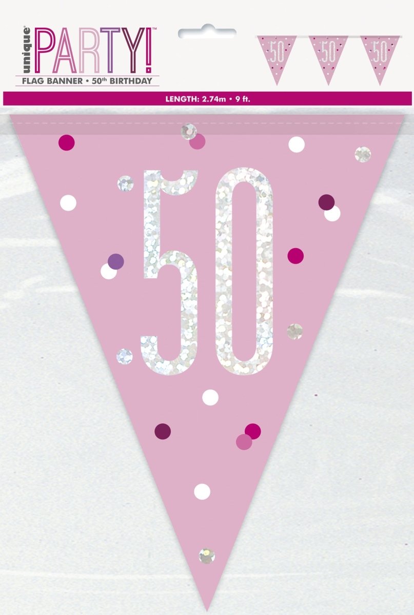 Verpakkingsinhoud: Slingers 50 Jaar Roze 2,74m
