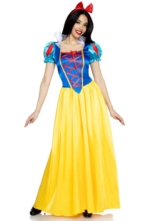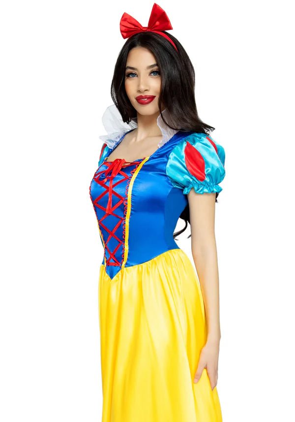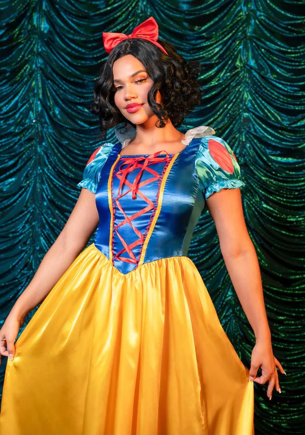 Word de mooiste prinses van het bos in het 2-delige Sneeuwwitje kostuum van Leg Avenue! Dit kostuum bestaat uit een lange jurk met een schattig linten detail, pofmouwtjes en een opstaand kraagje, samen met een bijpassende haarband met strik. Perfect voor Halloween, sprookjesachtige themafeesten of een iconisch kostuum voor een prinsessen-look! 👑🌲