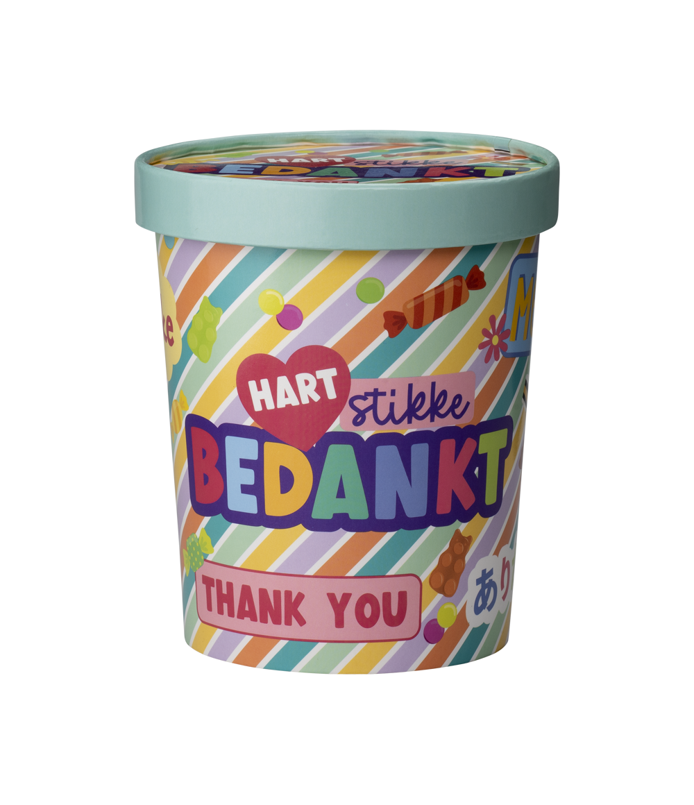 De vrolijke candy buckets zijn een echte eyecatcher in de winkel. Mede door het leuke design is deze candy bucket erg leuk om te krijgen. De snoepemmers zijn gemaakt van karton!