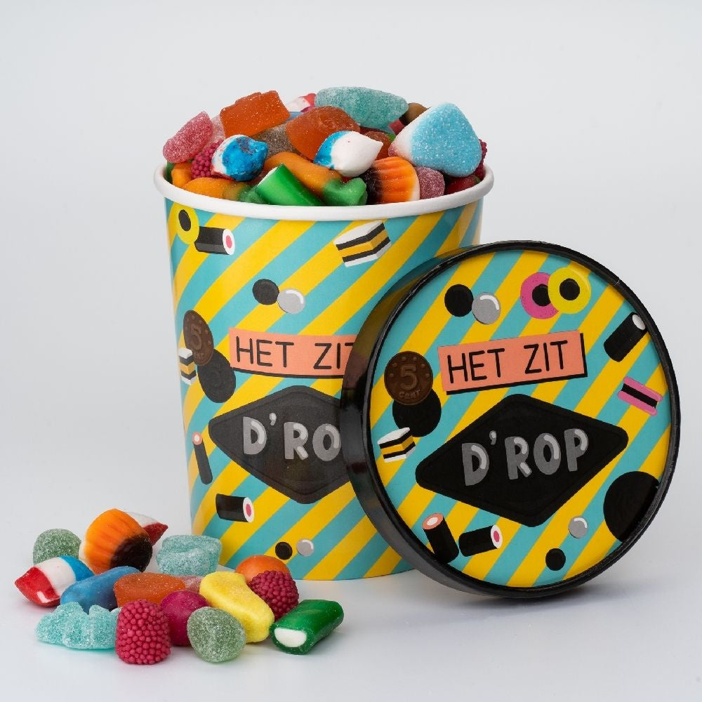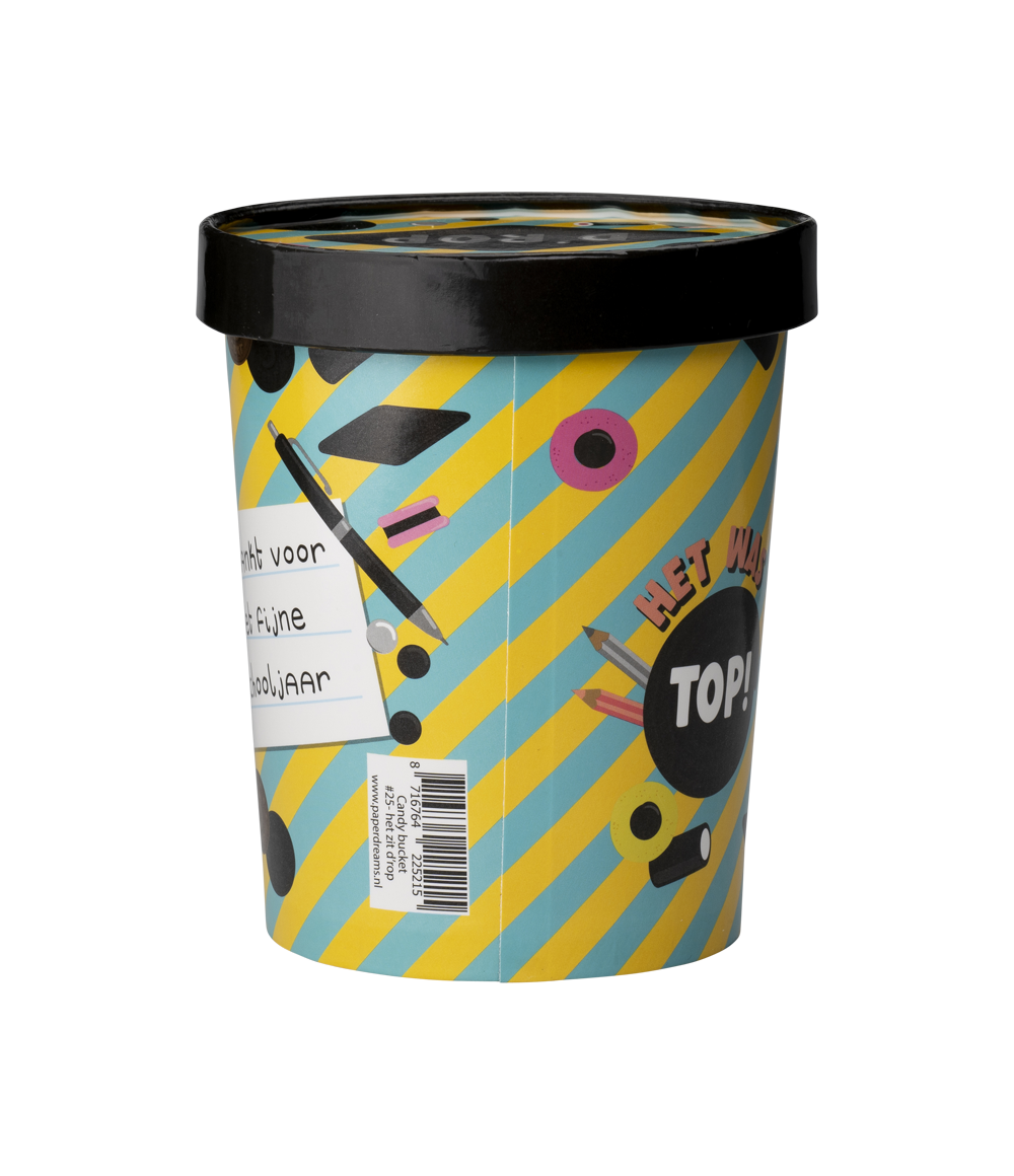 De vrolijke candy buckets zijn een echte eyecatcher in de winkel. Mede door het leuke design is deze candy bucket erg leuk om te krijgen. De snoepemmers zijn gemaakt van karton!