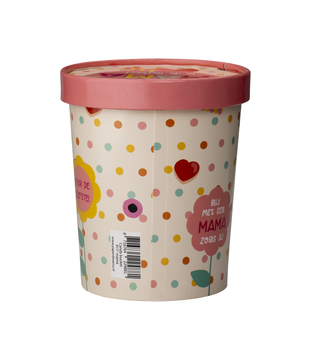 De vrolijke candy buckets zijn een echte eyecatcher in de winkel. Mede door het leuke design is deze candy bucket erg leuk om te krijgen. De snoepemmers zijn gemaakt van karton!