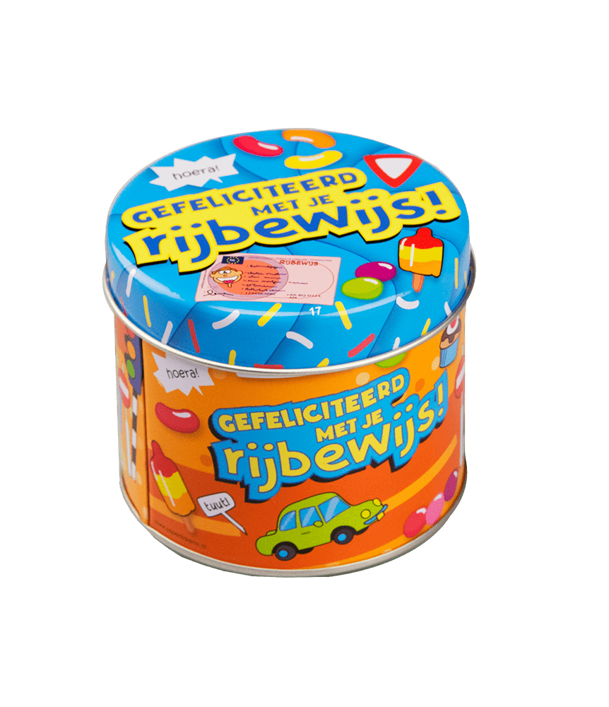 Verpakkingsinhoud: Snoepblik Rijbewijs 9cm