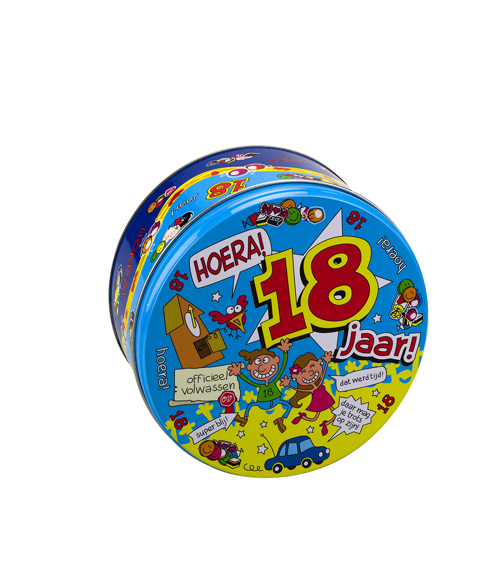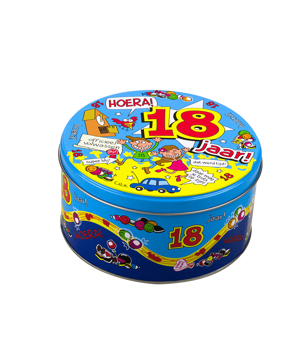Verpakkingsinhoud: Snoeptrommel 18 Jaar 14cm