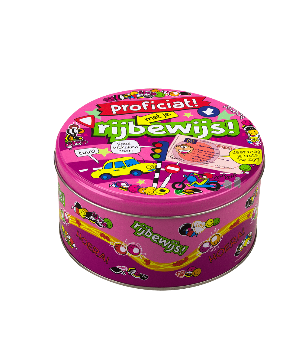 Verpakkingsinhoud: Snoeptrommel Geslaagd Rijbewijs 14cm