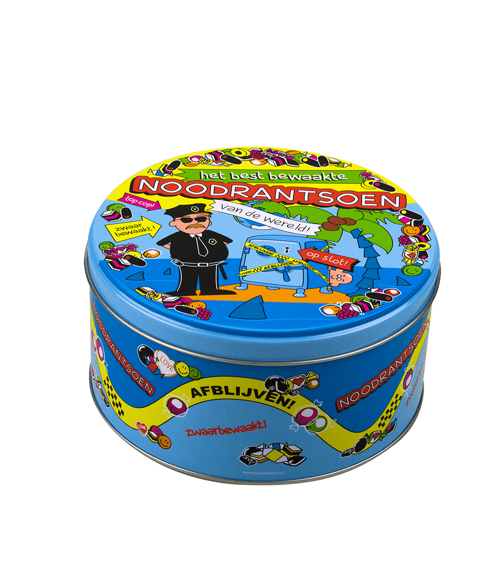 Verpakkingsinhoud: Snoeptrommel Noodrantsoen 14cm