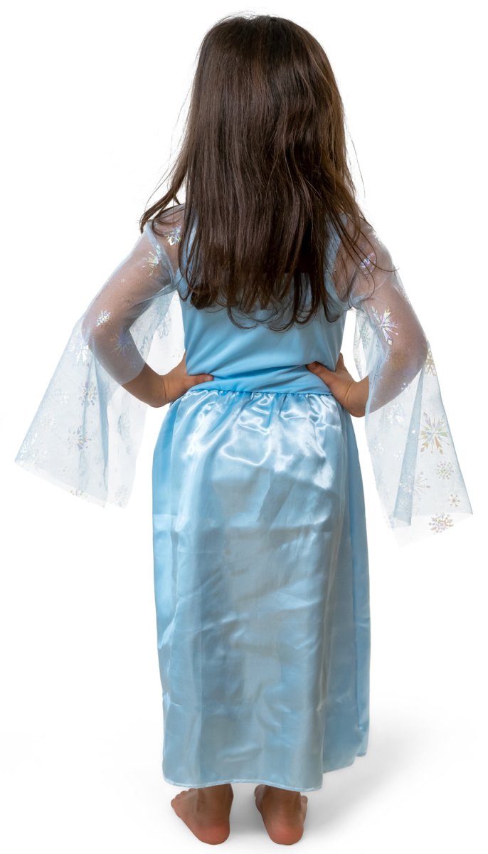 De Snowflake Princess Jurk – Kristal is een elegante lichtblauwe prinsessenjurk waarmee ieder kind straalt als een sierlijke sneeuwvlok. Perfect voor kinderfeestjes, themafeestjes en carnaval. De jurk wordt eenvoudig over het hoofd aangetrokken, zit comfortabel en is rijk gedetailleerd met glinsterende accenten die het winterse karakter volledig tot leven brengen.