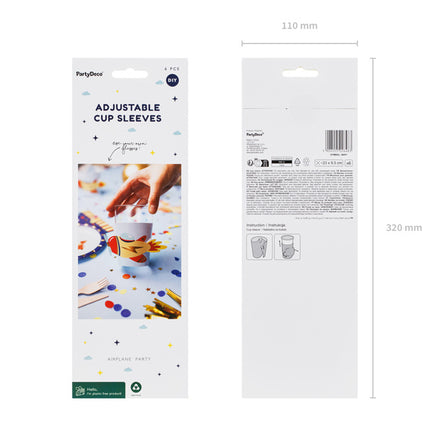 Bekerhulzen Vliegtuig, kleurenmix, formaat voor montage ca. 23 x 9,5 cm (1 pkt / 6 st.)
