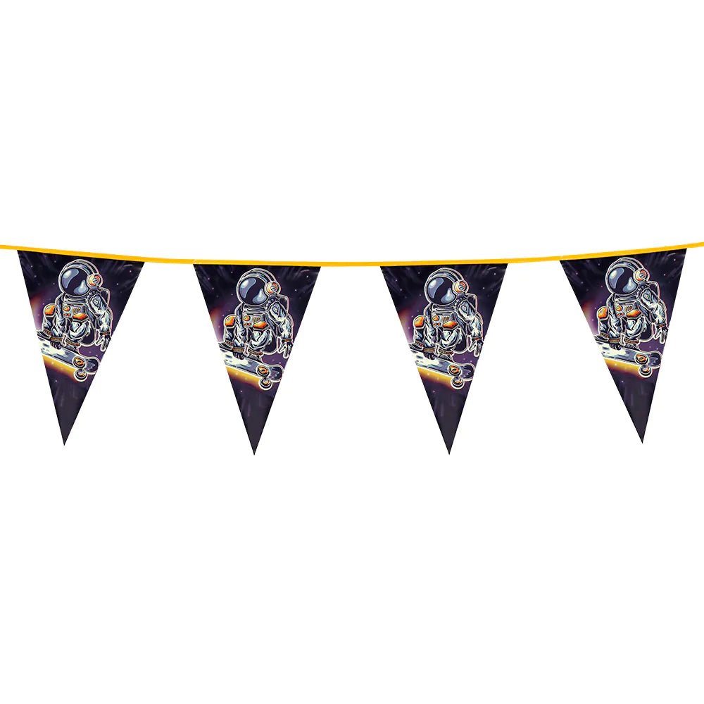 Deze Space vlaggenlijn is de ideale decoratie voor stoere kinderfeestjes, themafeesten of elke gelegenheid waarop avontuur en actie centraal staan.