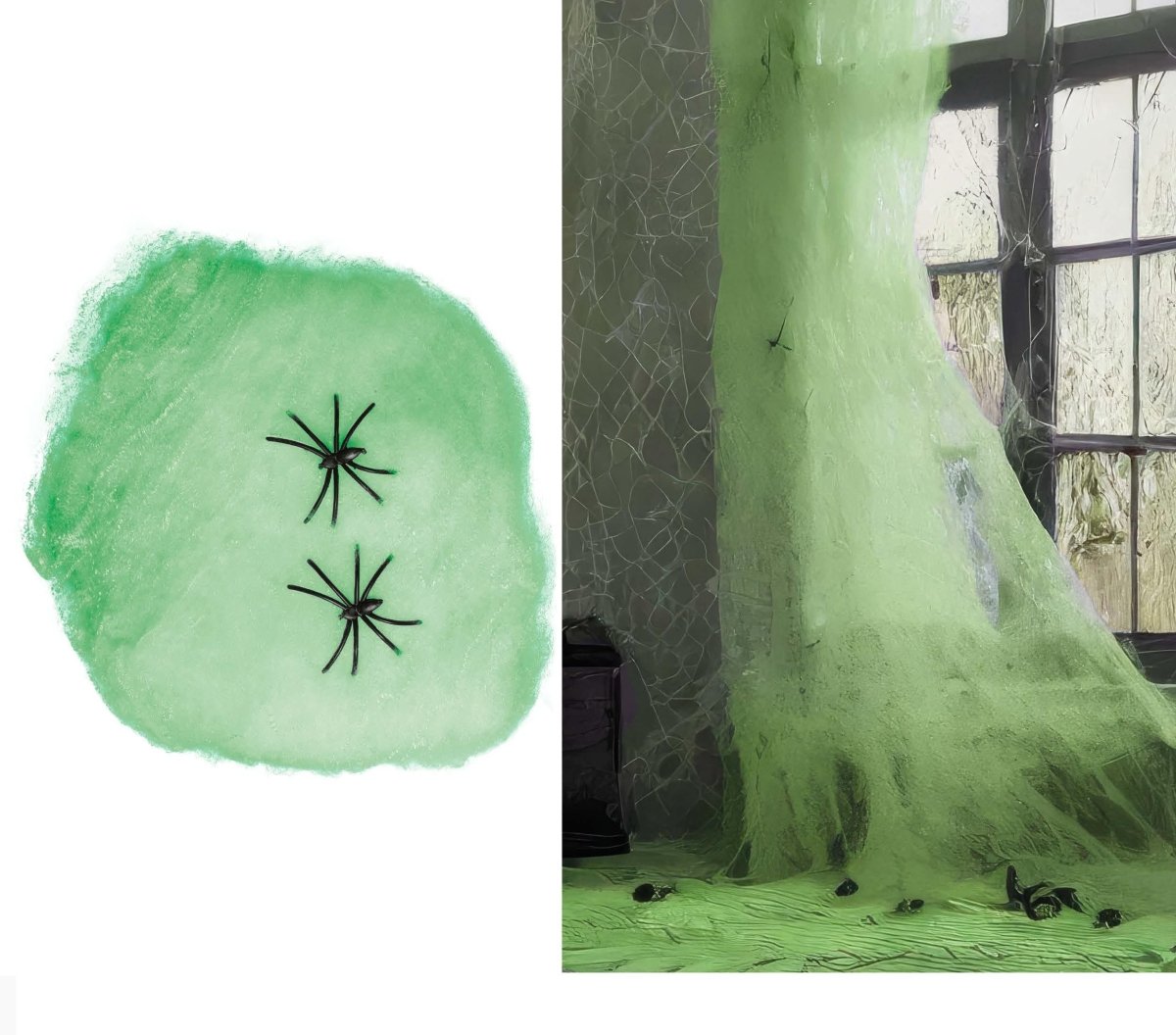 Verpakkingsinhoud: Spinnenweb Groen met 4 Spinnen 60gr