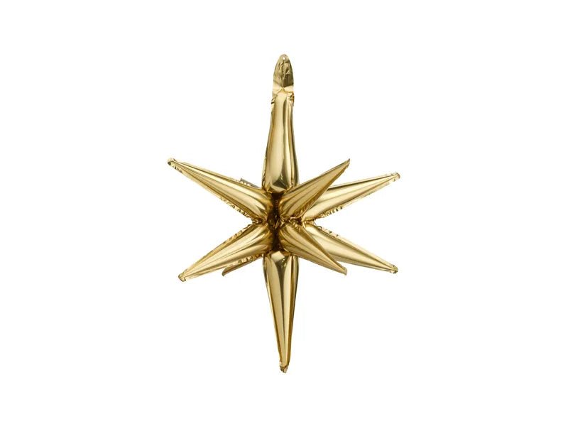 Folieballon 3D ster in goud, afmeting voor opblazen ca. 53 x 62 cm (21 x 24''), afmeting na opblazen ca. 50 cm (20''). Opblazen met lucht. Set is inclusief rietje.