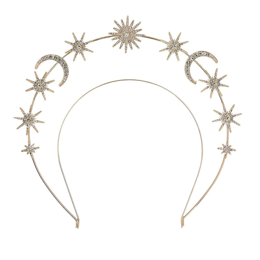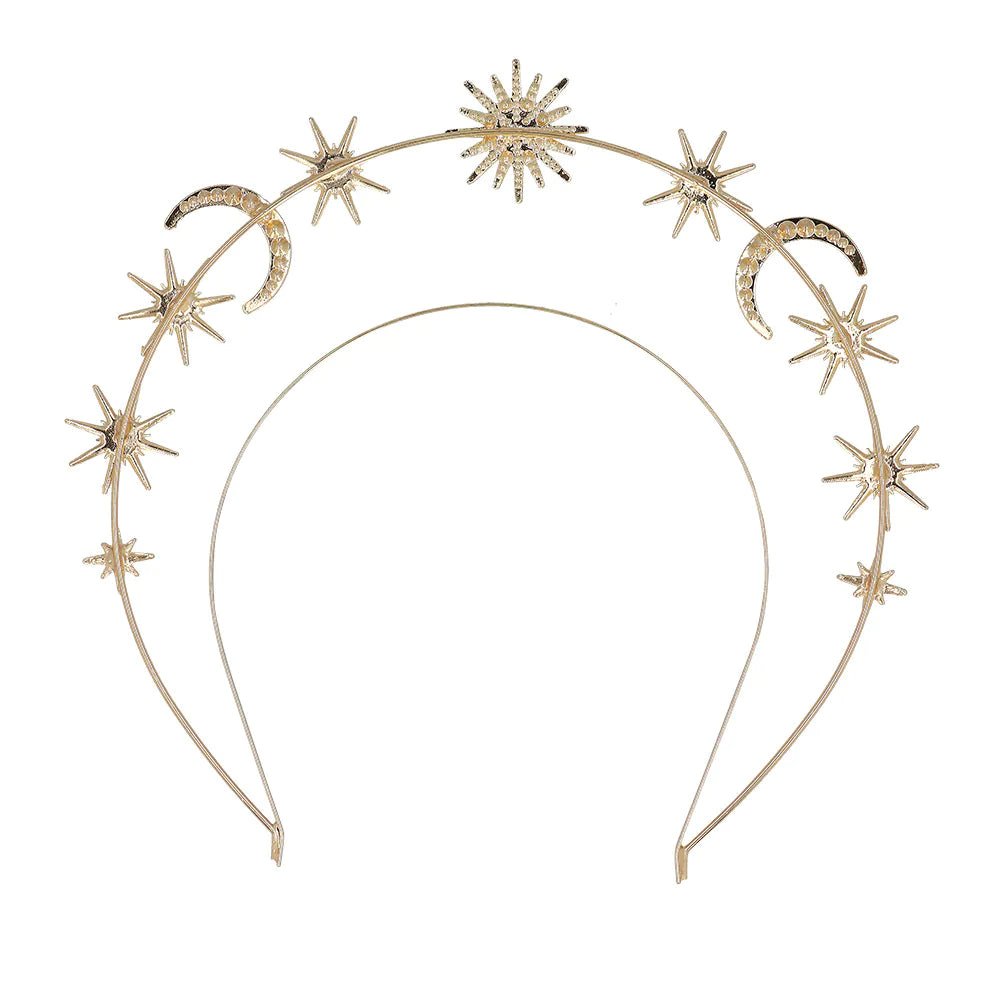 Deze metalen halo kroon is een unieke tiara en is versierd met glinsterende sterren, manen en een zon. De diadeem tilt elke outfit naar een hoger niveau. Daarnaast is deze mooie halo kroon ook een uniek accessoire om een kostuum als godin of engel compleet te maken voor carnaval of een cosplay evenement.