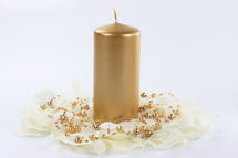 Breng sfeer en elegantie in huis met deze prachtige zuilkaarsen in metallic goud. Met een hoogte van 12 cm en een diameter van 6 cm is deze kaars perfect om te combineren met andere kaarsen of als subtiele eyecatcher in je interieur. De glanzende gouden afwerking geeft direct een luxe en feestelijke uitstraling.