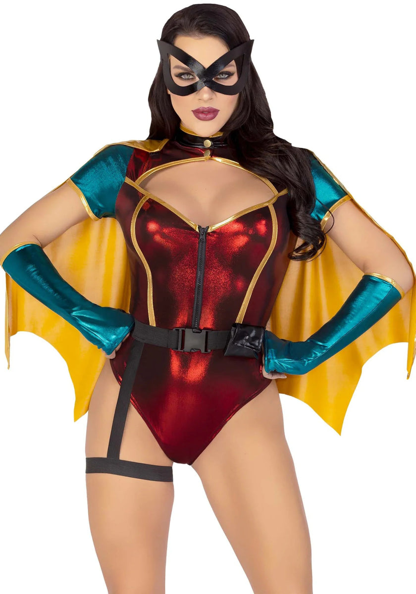 Maak je klaar om je innerlijke superheld te ontketenen met dit stoere 5-delige Robin kostuum! Dit dynamische ensemble bestaat uit een glinsterende zip-up bodysuit, een afneembare cape, een riem met jarretels, bijpassende handschoenen en een mysterieuze oogmasker. Stap in de rol van Robin en bescherm de stad met stijl en zelfvertrouwen. Perfect voor themafeesten, carnaval en epische superheldenavonturen! 💥✨