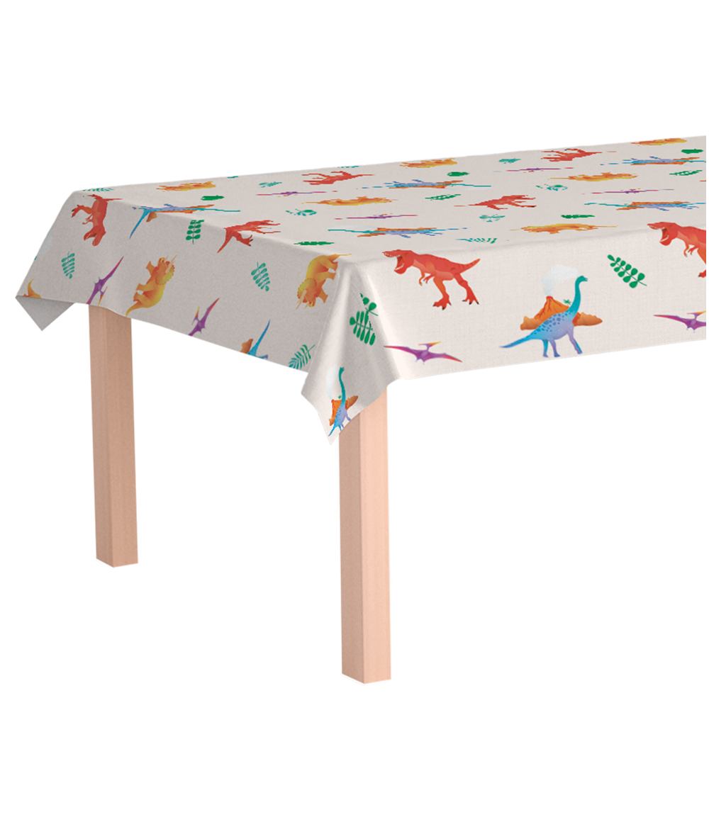 Dankzij het royale formaat van 137 × 274 cm past Table cloth – Dino op vrijwel elke feesttafel. Het is gemaakt van stevig PE-materiaal, waardoor het licht, praktisch en eenvoudig afneembaar is. Ideaal voor kinderfeestjes, dinoliefhebbers en themafeestjes!