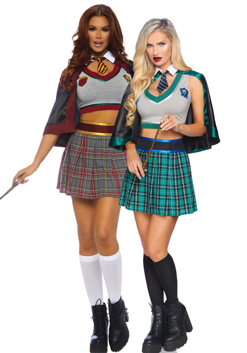 Stap in de wereld van spreuken en mysterie met dit betoverende 3-delige Sinister Spellcaster kostuum! Dit magische ensemble bestaat uit een stijlvolle cropped top met een badge-accent, een flatterende high-waist geruite rok en een dramatische cape met aangehechte stropdas. Perfect voor Halloween, carnaval en magische themafeesten! 🧙♀️📜