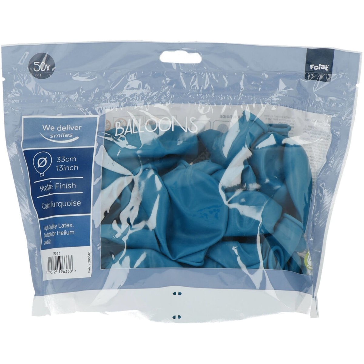 Ballonnen Calm Turquoise Mat 33cm - 50 stuks. Inhoud: 50 latex ballonnen. Kleur: Turquoise. Bijvoorbeeld te gebruiken tijdens de volgende feestgelegenheid/feestgelegenheden: Verjaardag, Kinderfeestje en Themafeest. Elke ballon is 13 inch/33 cm. Het artikel is gemaakt van latex.