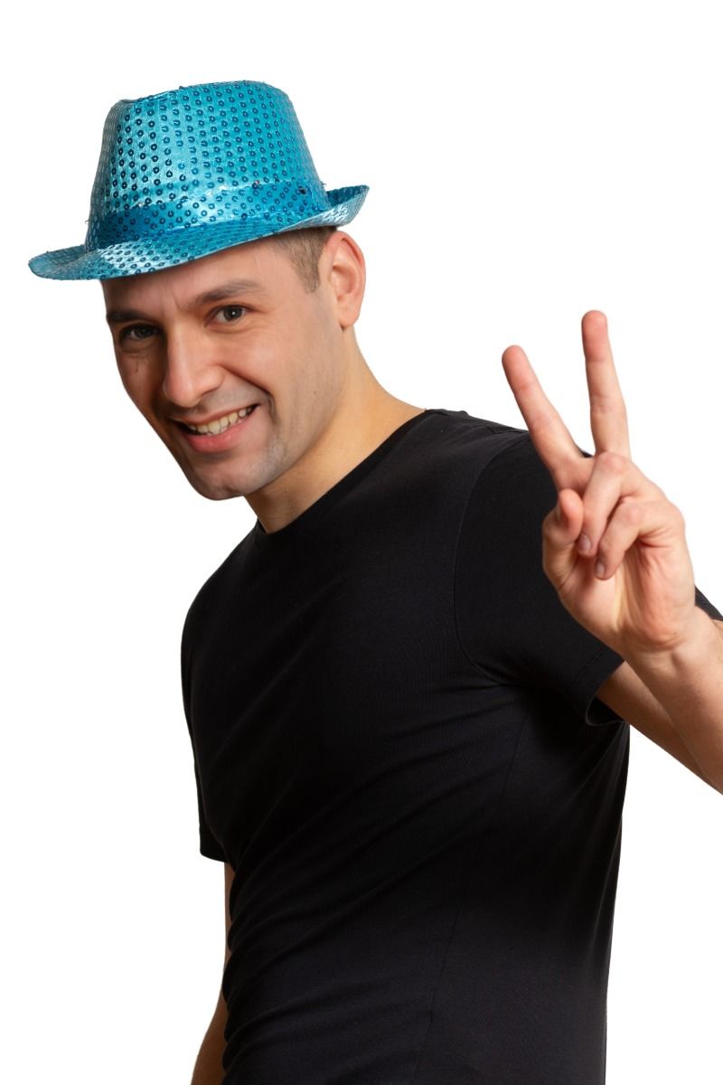 Turquoise Hoed Pailletten Met Licht