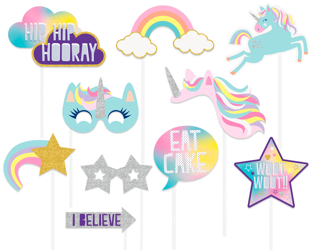 Verpakkingsinhoud: Folie Unicorn Photo Booth Props 10st