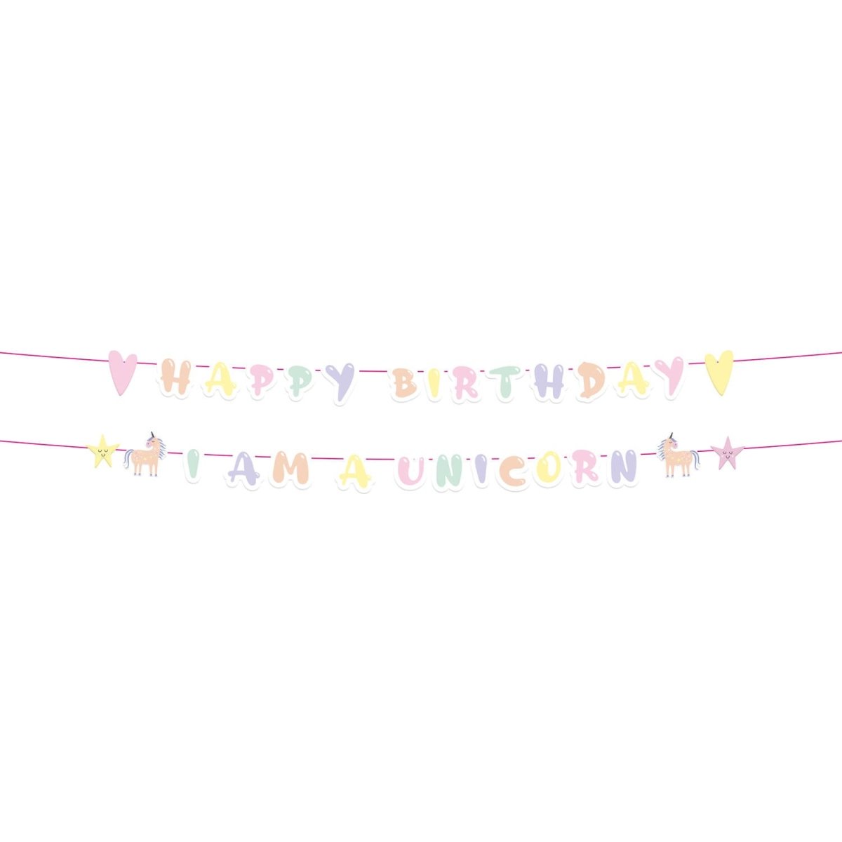 Letterslingers Unicorns & Rainbows - 2 stuks. Inhoud: 2 letterslingers. Kleur: Meerkleurig. Bijvoorbeeld te gebruiken tijdens de volgende feestgelegenheid/feestgelegenheden: Kinderfeestje. Elke slinger is ongeveer 14x150cm. Het artikel is gemaakt van papier.