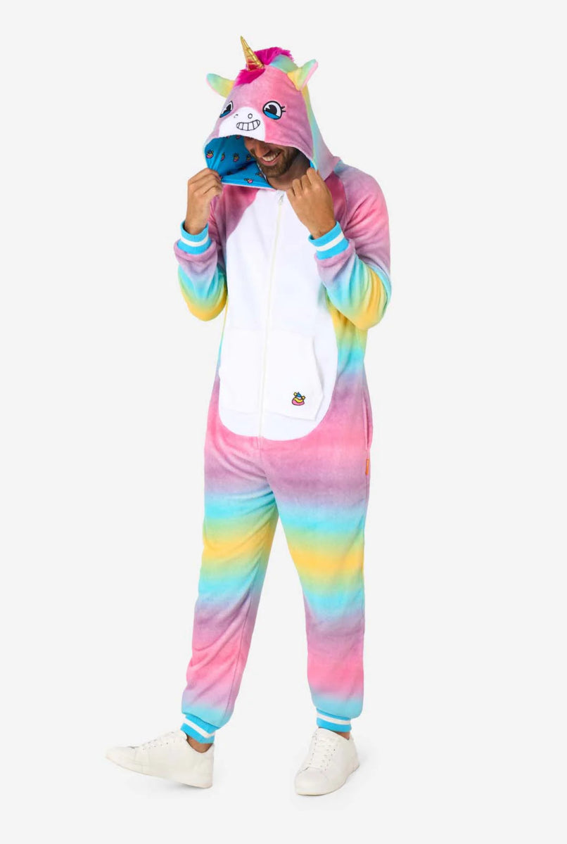 Laat je innerlijke unicorn de vrije loop met deze levendige Unicorn onesie voor volwassenen, perfect om te loungen, carnaval of gezellige avonden. Ontworpen met een regenboog-geïnspireerd patroon en een charmante unicorn capuchon compleet met een hoorn, brengt deze unisex onesie plezier en fantasie in je garderobe. Gemaakt van zacht, hoogwaardig fleece, zorgt het voor comfort de hele dag door, terwijl de handige ritssluiting het gemakkelijk maakt om te dragen. Of je nu op wilt vallen of lekker warm wilt blijven, deze eenhoorn onesie is de ultieme mix van stijl en comfort. Koop nu om je magische kant te omarmen!