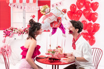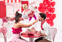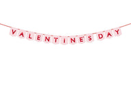 Banner Valentijnsdag van papier in roze kleur met opschrift in rode kleur, afmeting ca. 150 x 13 cm, lengte touw ca. 2,5 m.