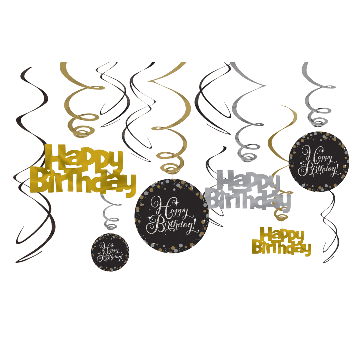 Verjaardag Hangdecoratie Happy Birthday Goud 61cm 12st