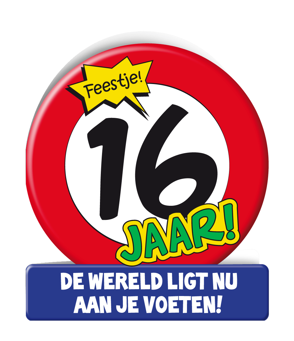 Verjaardagskaart 16 Jaar Verkeersbord 16,5cm