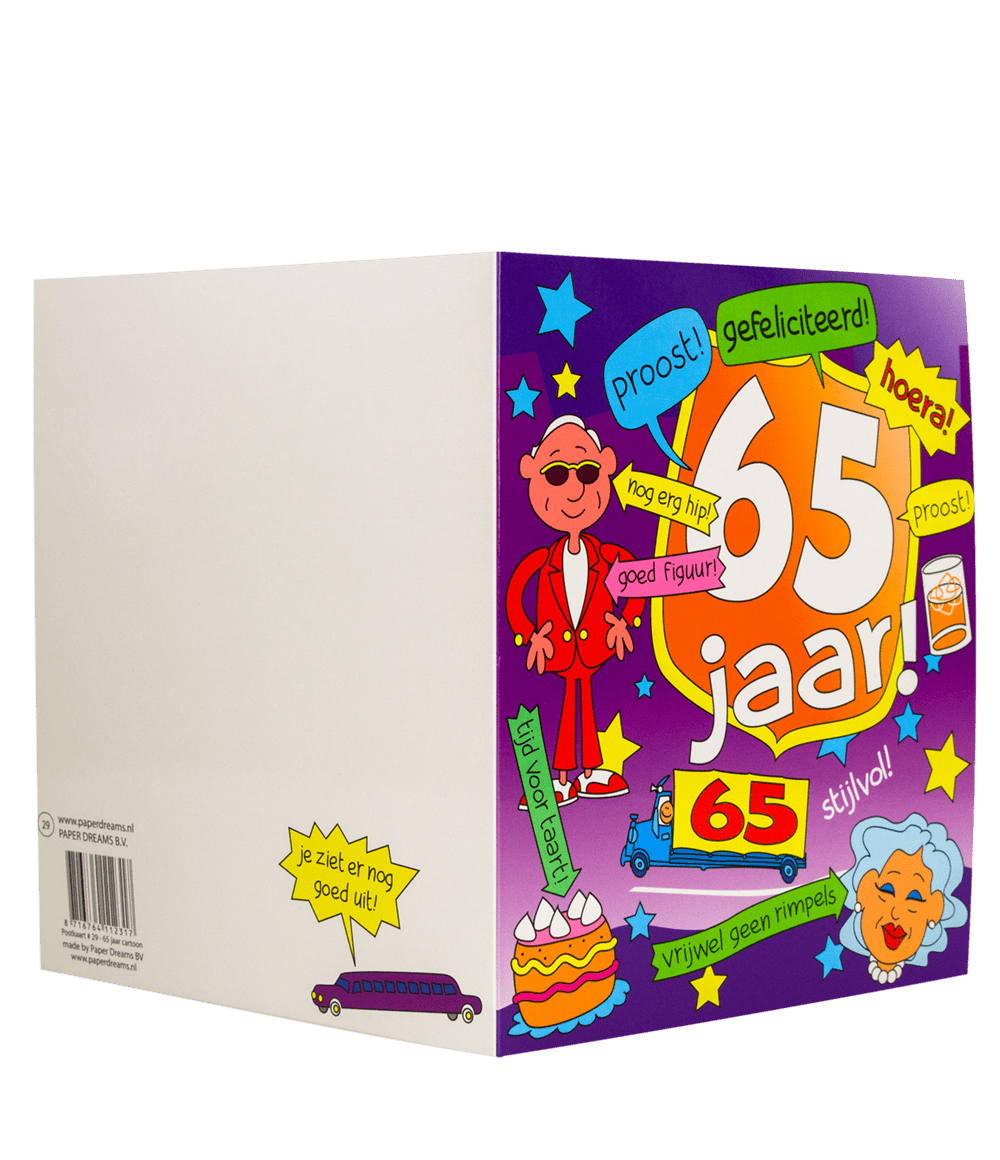 Verpakkingsinhoud: Verjaardagskaart 65 Jaar Cartoon 16,5cm