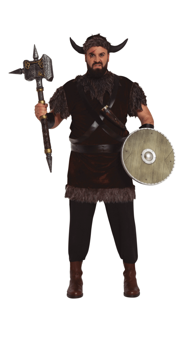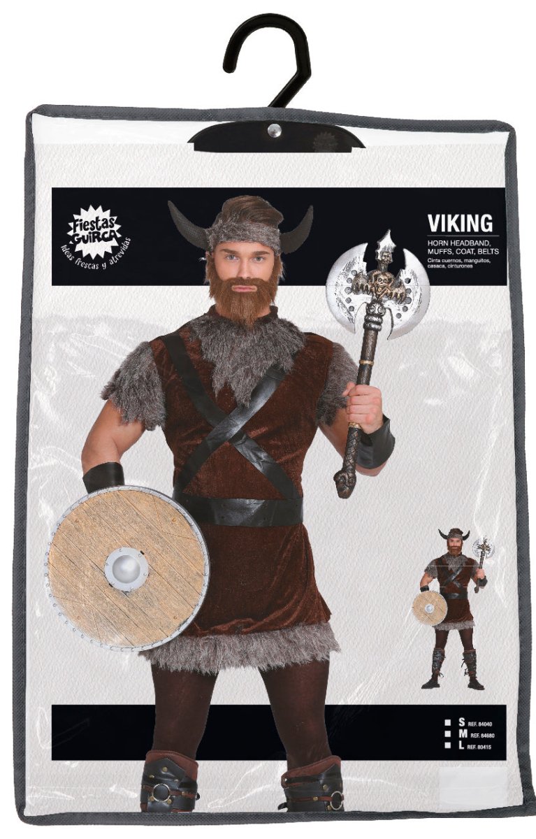Inhoud: viking toga, riem, armbanden en hoofdband met hoorns
