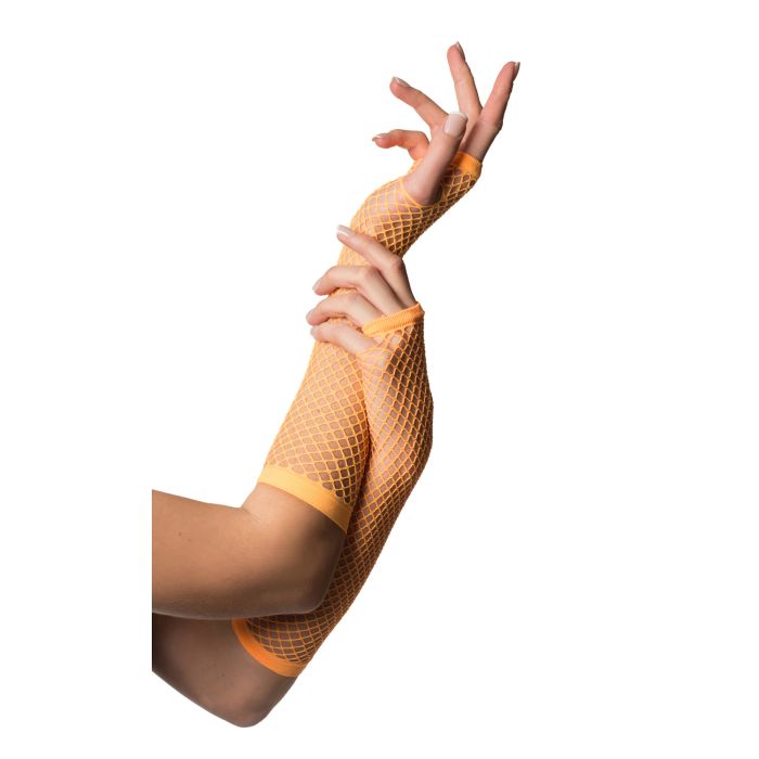 Vingerloze Handschoenen Lang Visnet Neon Oranje
