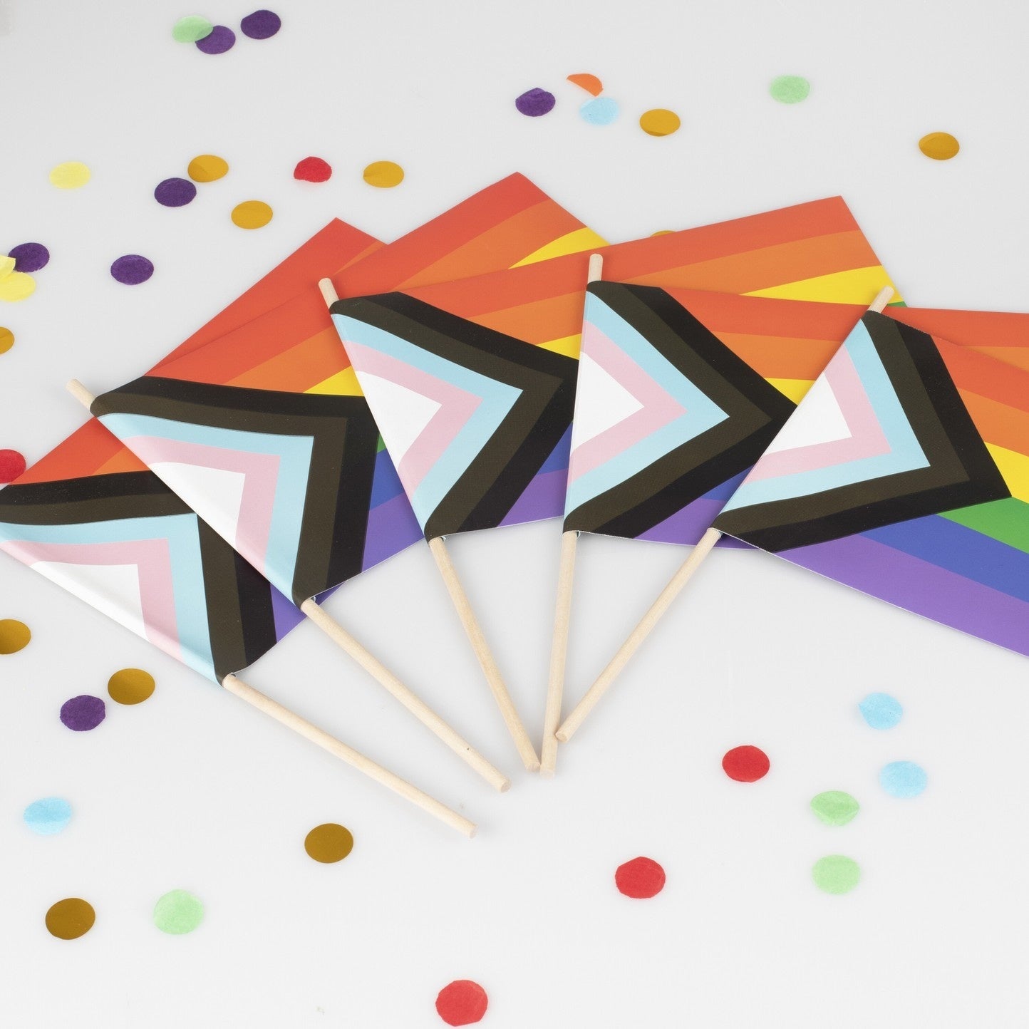 Vier feest met deze kleurrijke handvlaggen! Stijlvol en lichtgewicht, deze levendige vlaggen zijn perfect om mee te vieren op Pride-evenementen, feesten, avondjes uit en festivals! Elke verpakking bevat 5 vlaggen van 26 cm (H) x 22 cm (B) x 1 cm (D).