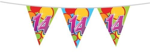 Inhoud: 15 vlaggen (verdeeld over 6 meter en 2 meter koord aan beide zijden)