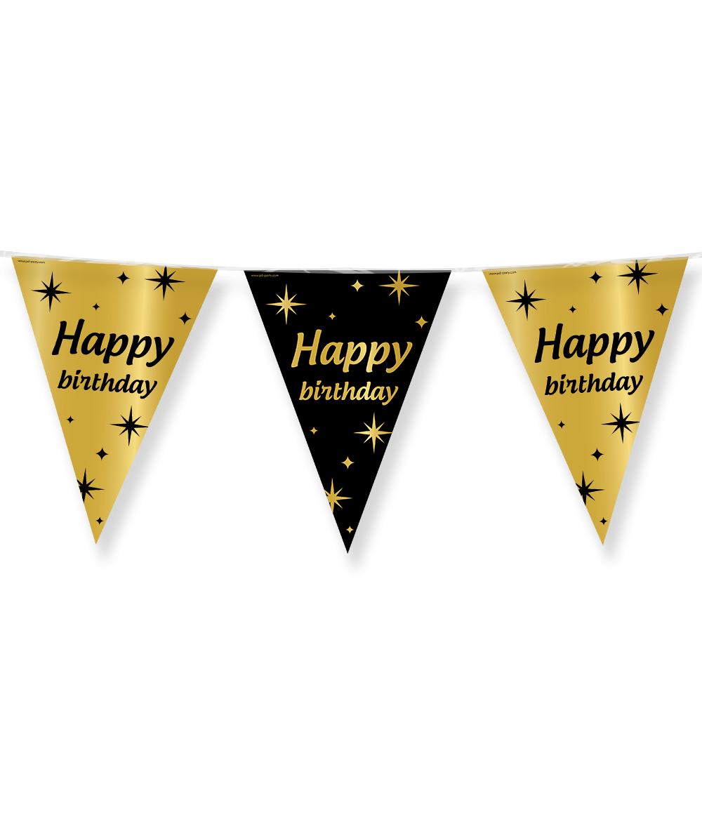 Vlaggenlijn Happy Birthday Goud Zwart 10m