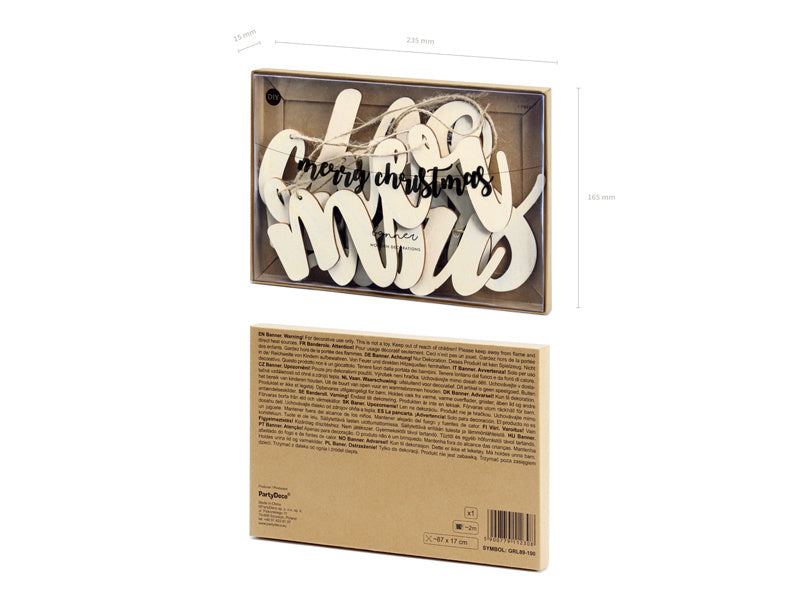 Vlaggenlijn Merry Christmas Hout 87cm