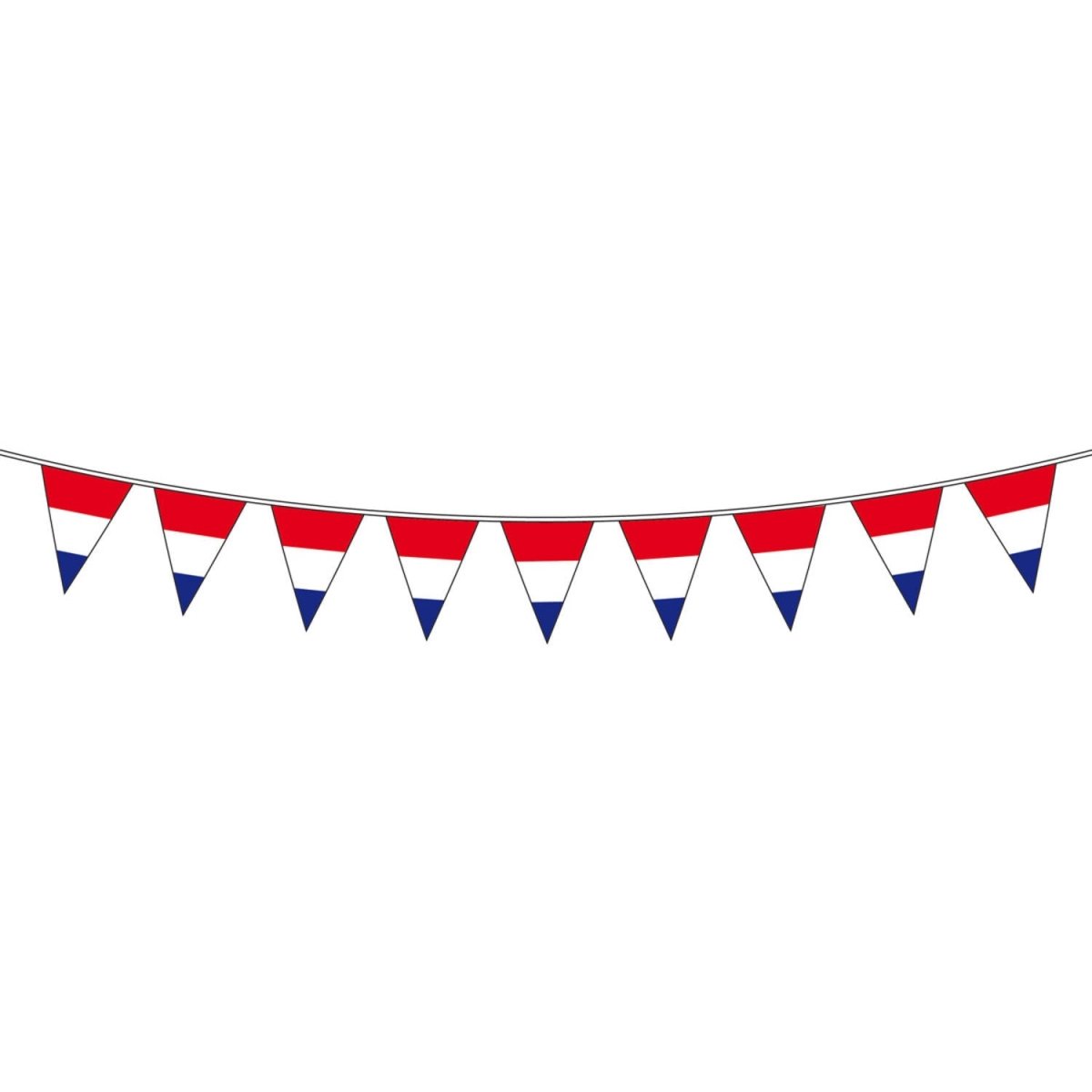 Vlaggenlijn rood wit blauw 10 meter. Inhoud: 1 vlaggenlijn. Kleur: Meerkleurig. Bijvoorbeeld te gebruiken tijdens de volgende feestgelegenheid/feestgelegenheden: Voetbal, Koningsdag. Deze slinger is 10 meter lang. Het artikel is gemaakt van plastic.