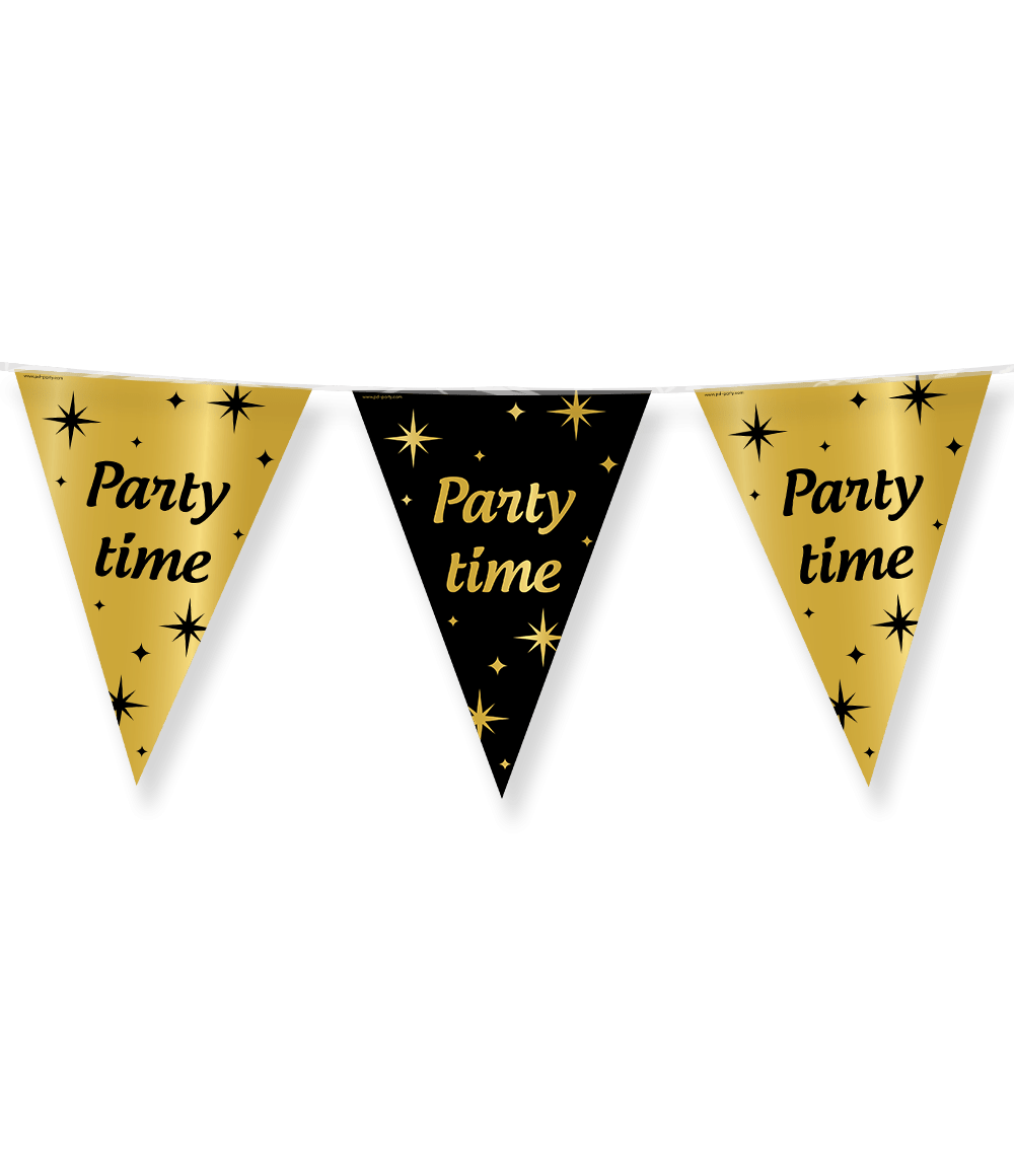 Vlaggenlijn Party Time Goud Zwart 10m