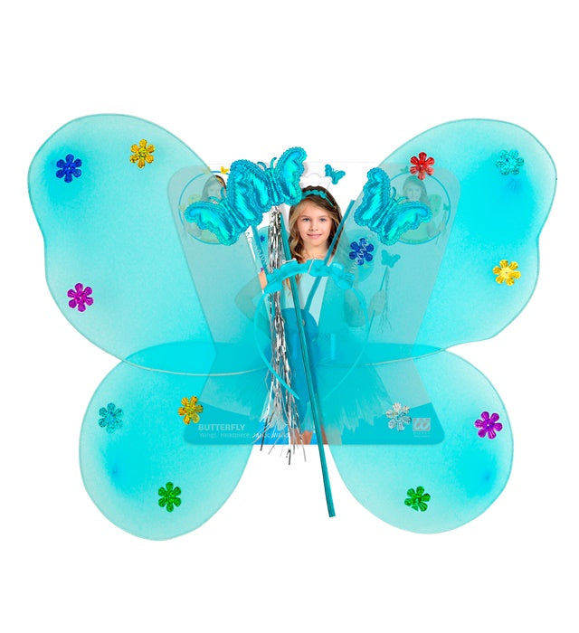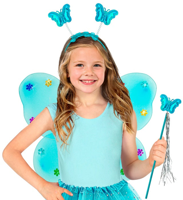 Laat kinderen zich transformeren in een betoverende vlinder met deze complete blauwe set, perfect voor verkleedfeestjes, thema-evenementen of fantasierijk rollenspel.