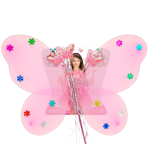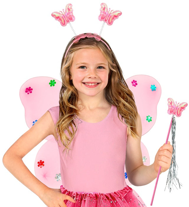 Laat kinderen zich transformeren in een betoverende vlinder met deze complete roze set, perfect voor verkleedfeestjes, thema-evenementen of fantasierijk rollenspel.