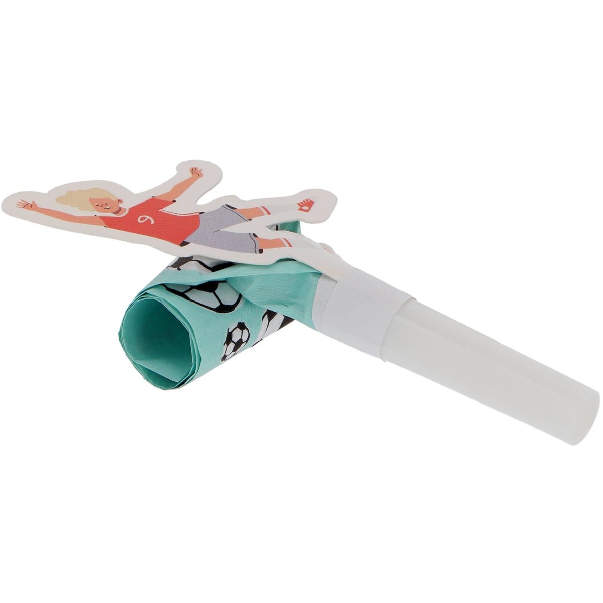 Toeters voor de voetballers! Roltongen - Fantastic Football - 6 stuks. Inhoud: 6 roltongen. Bijvoorbeeld te gebruiken tijdens de volgende feestgelegenheid/feestgelegenheden: Kinderfeestje, Verjaardag, Voetbal. Super leuke roltongen geschikt voor elk voetbalfeest. Er zitten er 6 in een verpakking en zijn blauw met daarop allemaal voetballen. Ze hebben een kartonnen voetballer als extra decoratie. Uitgerold zijn de roltongen ongeveer 28 cm. Het mondstuk is plactic, wit en 5 cm lang. Het rolgedeelte is 4 cm breed en 23 cm lang (uitgerold). Ingerold zijn de roltongen ongeveer 11 cm. Dit artikel is gemaakt van papier.