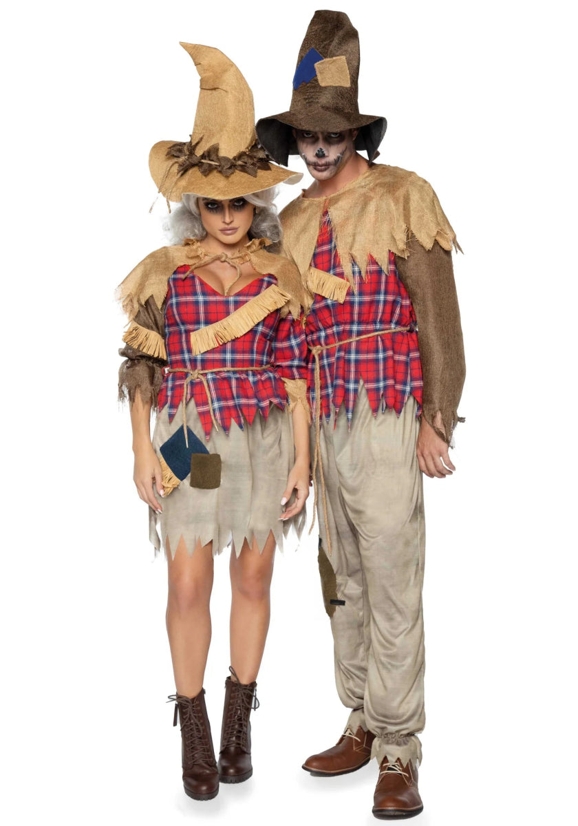 Stap het spookachtige maïsveld in en omarm je sinistere kant met dit griezelige 4-delige Sinister Scarecrow kostuum! Dit angstaanjagend stijlvolle ensemble bestaat uit een patchwork jurk met stro-accenten, een ruige jute shawl, een touwriem en een iconische vogelverschrikkerhoed. De getailleerde taille, sweetheart halslijn en speelse gerafelde rok zorgen voor een flatterend silhouet dat zowel mysterieus als betoverend is! 🍂✨