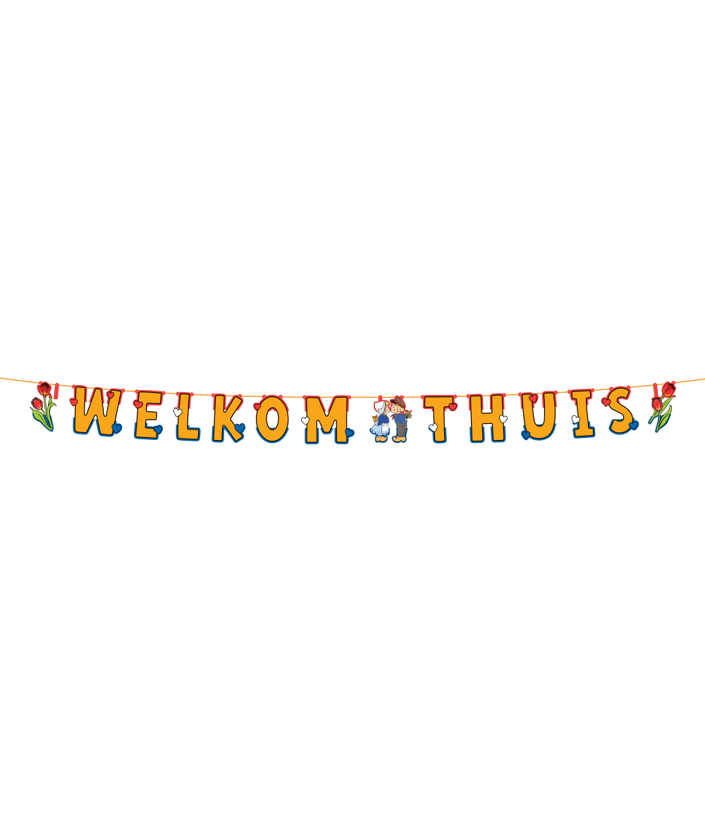 Deze slinger met als thema welkom thuis is de ideale versiering op een welkom thuis feestje. Door de gebruikte kleuren en het vrolijke design vallen deze slingers dan ook extra goed op! De slingers zijn gemaakt van papier, hebben een lengte van 3 meter