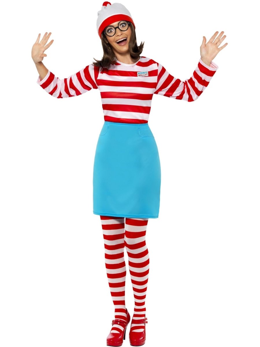 Met dit Wenda kostuum ben je direct herkenbaar als het populaire Where's Wally? personage. De complete set inclusief hoed, bril, top, rok en panty zorgt voor een speelse en opvallende outfit op elk evenement of feestje.
