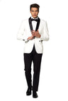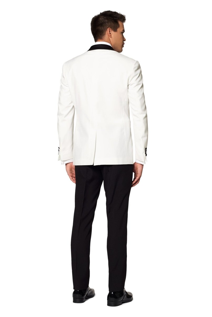 Een gebroken wit smokingjasje, gecombineerd met een zwarte smokingbroek met een dubbele plooi en een strikje, is een van de elegantste opties voor formele kleding, en laten jou opvallen in stijl. Het is geschikt voor black tie evenementen, formele gelegenheden overdag en zomerse formele gelegenheid. De Parly White tuxedo heeft een satijnen revers en een moderne pasvorm.