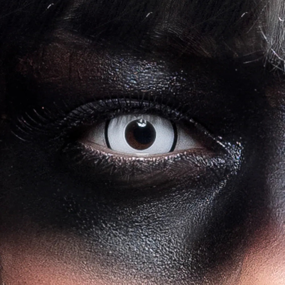 Deze witte lenzen hebben een zwart randje, waardoor je een extra indringende blik creeert. Dat maakt ze perfect voor bij een freaky demoon Halloween kostuum. Deze zachte weeklenzen zijn zonder sterkte.