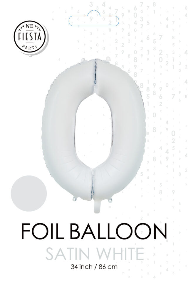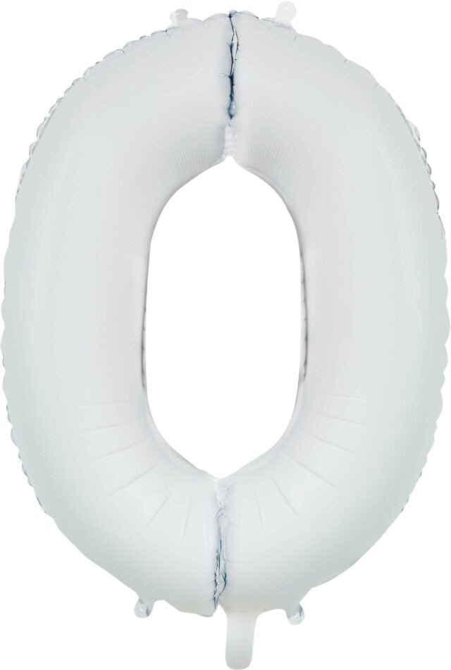 Witte Cijfer Ballon 0 Jaar Glans 86cm