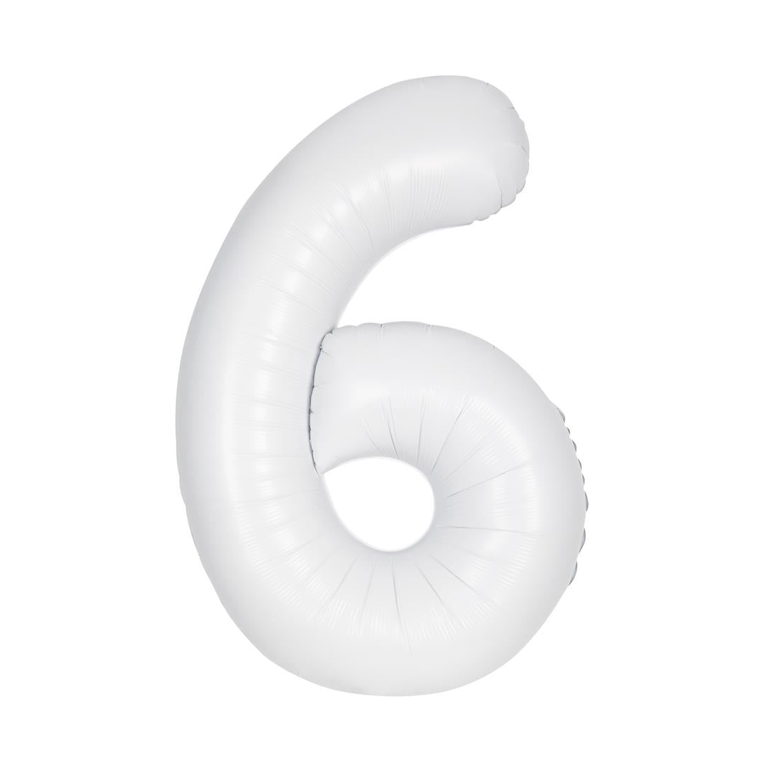 Witte Cijfer Ballon 6 Jaar Matte 86cm