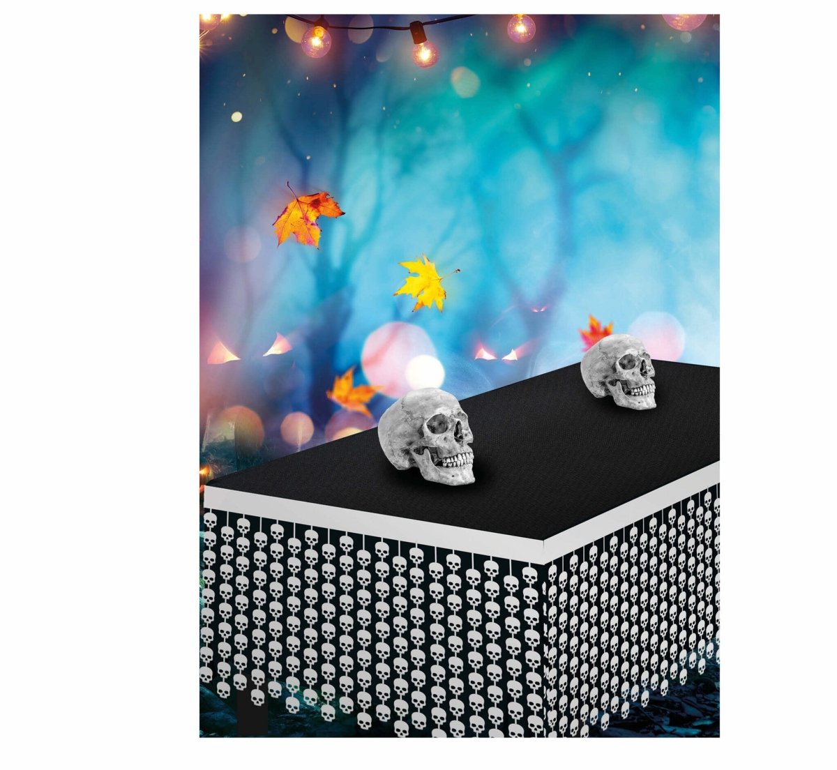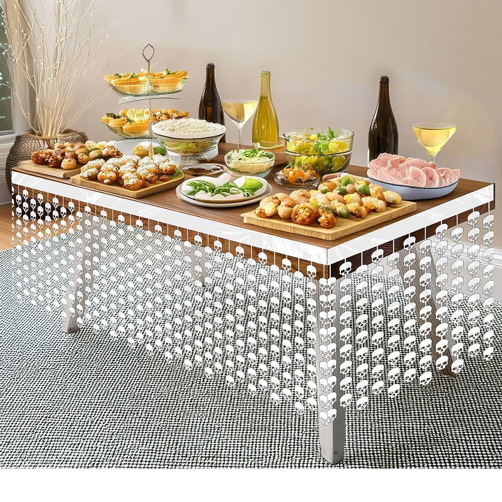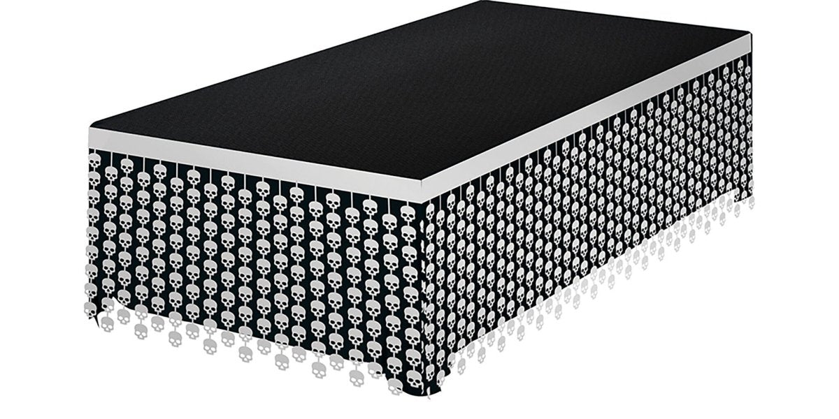Witte Halloween Tafelrok Doodshoofden 4m